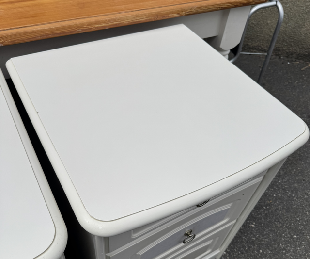 A pair of solid white bed sides with some minor signs of use but still very solid and good condition.