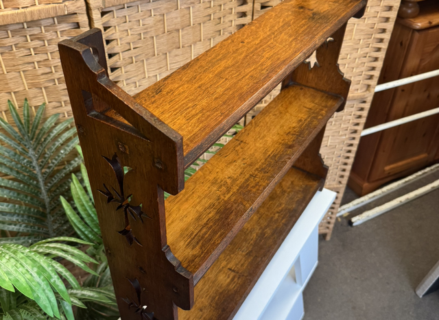 Antique oak arts and crafts wall shelf likely 20th century in good condition.