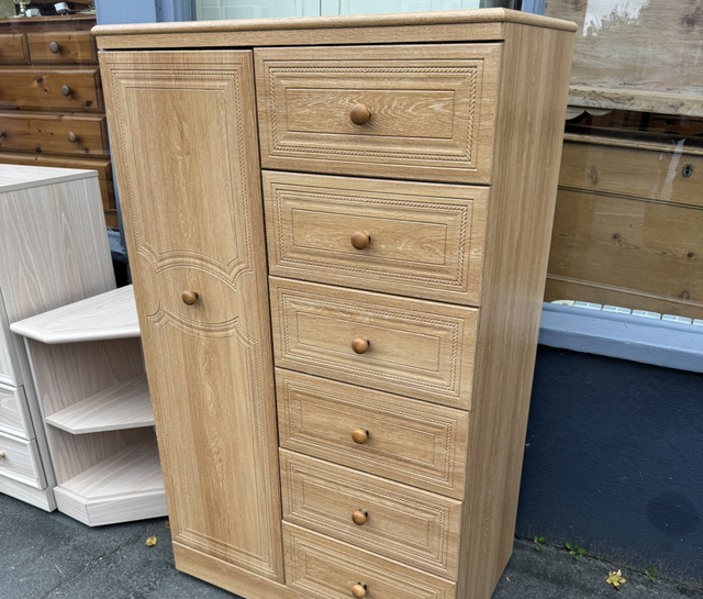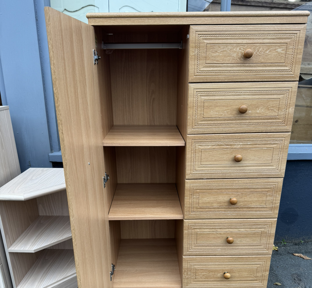 Large modern tall boy with hanging rail/shelves and six drawers all in great condition.