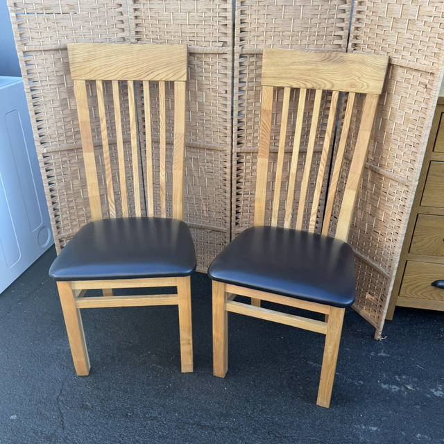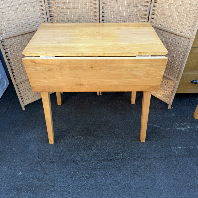 Oak drop leaf dining table with two oak dining chairs in great condition.