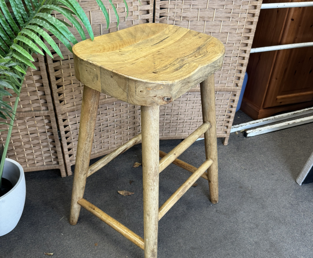 Solid Weathered Wooden Bar Stool With Shaped Seat